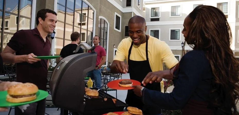 Feel at home away from home in Newport News / Yorktown VA at the welcoming Homewood Suites by Hilton Yorktown Newport News Specializing in the extended stay experience. The Homewood Suites by Hilton Yorktown Newport News is a perfect hotel for government per diem project teams training relocation temporary corporate housing . The friendly welcoming hotel staff is dedicated to meeting your needs. Conveniently located at exit 256B off I64 you'll discover the easy access to the nearby towns of Hampton Virginia Beach Suffolk and Williamsburg. Flying into Newport News Williamsburg Airport less than three miles away makes it especially convenient for professionals visiting for work or official duty at NASA Ft. Eustis Langley AFB Lockheed Martin Raytheon Huntington Ingall's Shipyard and Northrop Grumman. If you’re with the kids, expect to spend Saturday at Busch Gardens or take a plunge in the Atlantic Ocean at Virginia Beach. There's a varied selection of restaurants and entertainment within walking distance of the hotel. The Homewood Suites by Hilton Yorktown Newport News offers apartment style suites with convenience of home. Our pet friendly hotel offers Studio one two bedroom suites featuring fully equipped kitchens spacious living and work areas complimentary storage units self-laundry facility and full hot breakfast buffet a Fitness Center BBQ grills & Evening Social Receptions (Tuesday - Thursday).