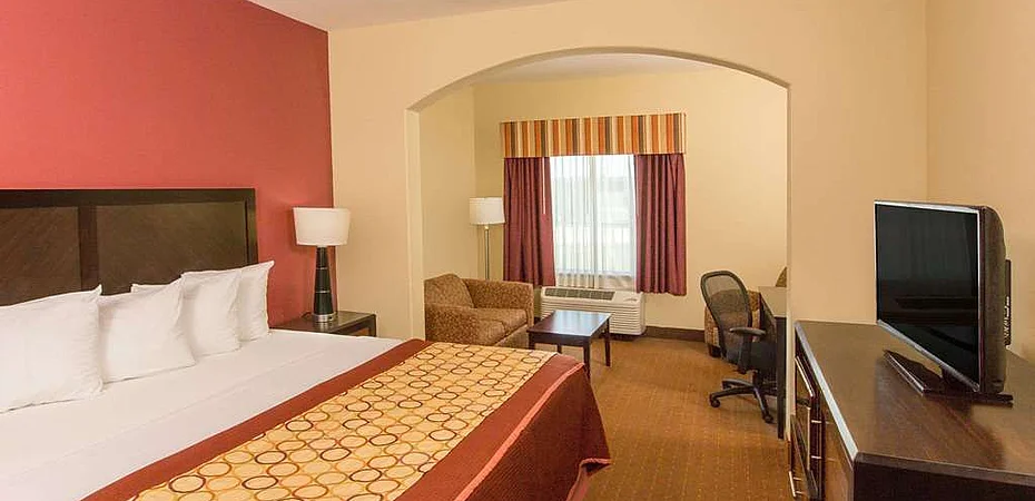 General DescriptionHave fun at this Howard Johnson Bunkie LA conveniently located off Interstate 49 near Bay Hills Golf Course, a 24-hour restaurant and casino and historic plantation houses Alexandria is just a half hour away Start your mornings happy with a complimentary Rise and Dine continental breakfast and newspaper Make a splash in the outdoor pool, and keep your wardrobe fresh with the guest laundry After an exciting day with the family, unwind watching the 32-inch TV in your comfortable guest room with complimentary wireless Internet access Suites, smoke-free and handicapped-accessible rooms are also available