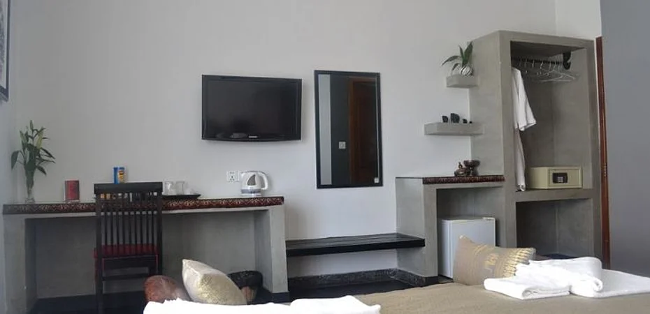 Property Location You'll be centrally located in Siem Reap with a stay at Rumahmu Boutique Hotel, minutes from Angkor Night Market and Siem Reap Art Center. This hotel is within close proximity of Psar Chaa Market and Pub Street.Rooms Make yourself at home in one of the 13 individually decorated guestrooms, featuring refrigerators and minibars. 32-inch LCD televisions with cable programming provide entertainment, while complimentary wireless Internet access keeps you connected. Private bathrooms with showers feature rainfall showerheads and complimentary toiletries. Conveniences include phones, as well as safes and desks.Rec, Spa, Premium Amenities Be sure to enjoy recreational amenities including an outdoor pool and a spa tub. Additional features include complimentary wireless Internet access, concierge services, and a television in the lobby. Guests can catch a ride to nearby destinations on the area shuttle (surcharge).Dining Enjoy a meal at a restaurant, or stay in and take advantage of the hotel's room service (during limited hours). While enjoying a refreshing dip in the hotel pool, you can order your favorite drink at the poolside bar.Business, Other Amenities Featured amenities include a business center, limo/town car service, and a computer station. A shuttle from the airport to the hotel is complimentary (available on request).