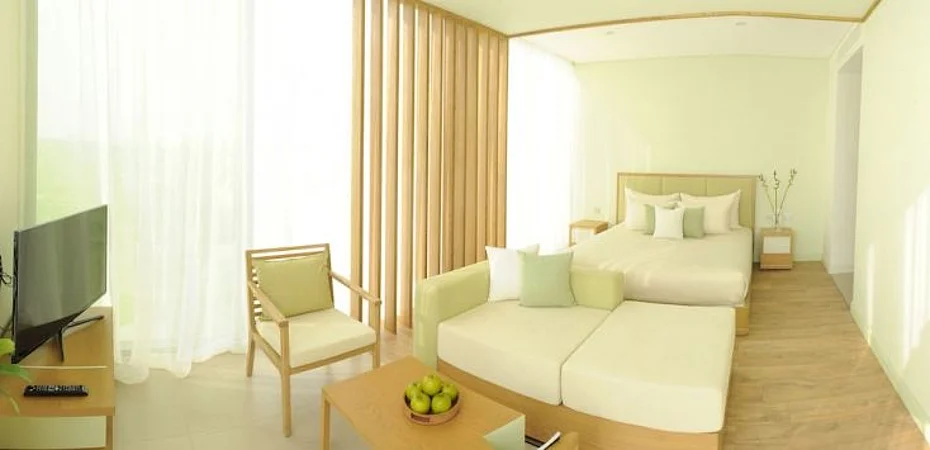 Bei einem Aufenthalt im Fusion Suites Danang Beach in Da Nang (Son Tra) wohnen Sie nur wenige Kilometer von My-Khe-Strand und Museum für Cham-Skulpturen entfernt. Dieses Apartmenthotel mit 4 Sternen befindet sich in der Nähe von: Da Nang City Administration Center sowie Brücke über den Han.Zimmer Fühlen Sie sich in einem der 129 klimatisierten Zimmer, die Kochnischen bieten, die über Kühlschrank und Mikrowelle verfügen, wie zu Hause. Ein WLAN-Internetzugang (kostenlos) ist ebenso verfügbar wie Kabelempfang. Zur Austattung gehören Zimmersafes und separate Sitzecken; die Zimmer werden täglich sauber gemacht.Freizeit, Wellness, Premium-Annehmlichkeiten Sie haben die Qual der Wahl zwischen: Nachtclub, Fitnesscenter und Außenpool. WLAN-Internetzugang (kostenlos), Concierge-Service und Babysittter oder Kinderbetreuung (gegen Gebühr) stehen ebenfalls zur Verfügung. Ziele in der Umgebung erreichen Sie mit dem Shuttle (gegen Gebühr).Speisen Dieses Apartmenthotel beherbergt ein Restaurant, in dem Sie den Blick auf den Pool genießen können. Ansonsten können Sie sich Ihr Abendessen per Zimmerservice (bitte Zeiten beachten) direkt in Ihr Zimmer bringen lassen. Neben dem Pool, den dieses Apartmenthotel zur Verfügung stellt, können Sie sich an der Bar Ihr Lieblingsgetränk bestellen. Ein inbegriffenes nach Wunsch zubereitetes Frühstück wird täglich angeboten.Business, weitere Annehmlichkeiten Zum Angebot für Geschäftsreisende gehören Textilreinigungsservice, eine rund um die Uhr besetzte Rezeption und Gepäckaufbewahrung. Ein Flughafentransfer ist verfügbar (gegen Gebühr).
