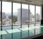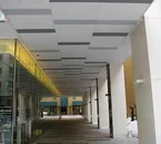 Das Hotel besteht aus einem modernen, quadratischen, braungefärbten Betonbau.