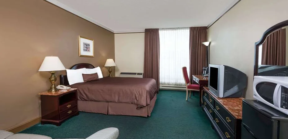 General DescriptionHave fun at this Howard Johnson Plaza Hotel Windsor conveniently located off Highway 401 near downtown, shopping and Caesars Windsor Casino for gaming and live entertainment Watch sporting events and concerts at Windsor Family Credit Union Centre, or attend an event at Joe Louis Arena and Cobo conference and exhibition center just 12 miles from this lodging Find great breakfast and lunch onsite at the Marquis Restaurant, and start your morning refreshed with a complimentary Rise and Dine continental breakfast Host an event in the meeting rooms and banquet facilities, and stay productive in the business center Complimentary large-vehicle parking makes it easy to bring a crowd Connect to complimentary wireless Internet access from the comfort of your guest room, or upgrade to a hot tub room or suite for additional comfort Smoke-free rooms are also available Pets are welcome at this lodging