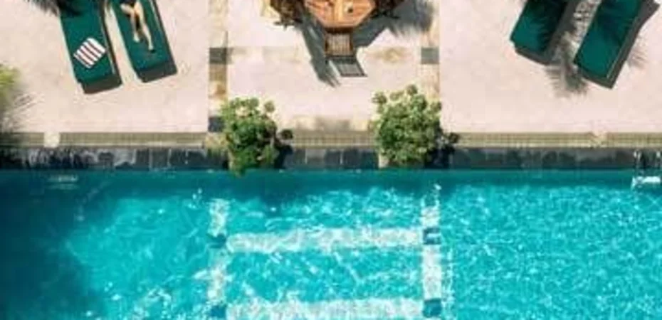 Das Hotel wurde in einer modernen Interpretation des klassischen Stils gestaltet. Da ist ein modernes Hochhaus.