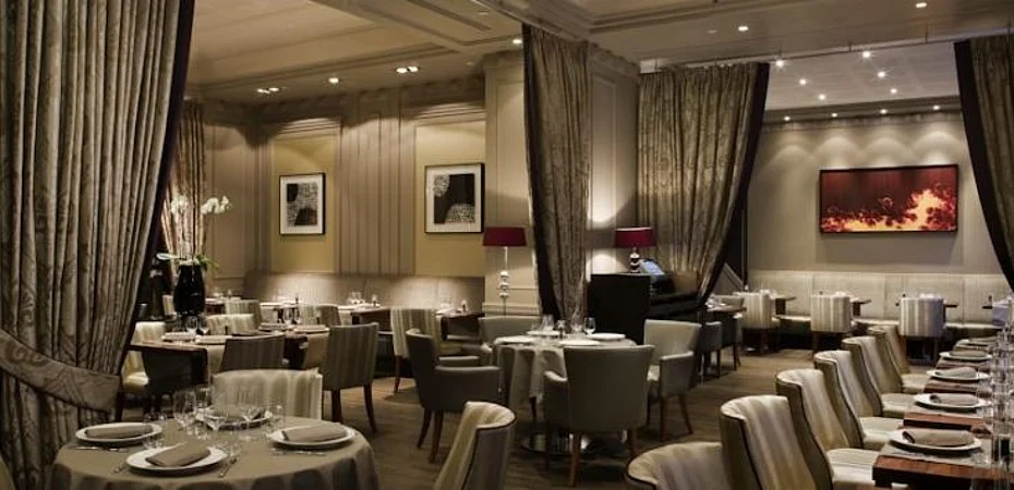 Die Empfangshalle ist groß, offen angelegt und hat eine große Lounge, die zur Bar führt. Dieser Raum ist mit seiner sehr hohen Decke, dem Marmorboden und den großen Säulen äußerst eindrucksvoll. Mit warmen Farben und kostbaren Möbeln ist er in einem sehr pariserischen Dekor gestaltet.