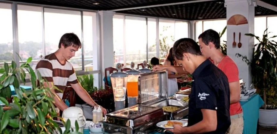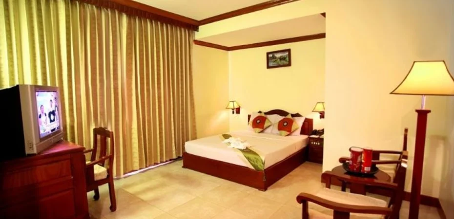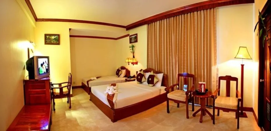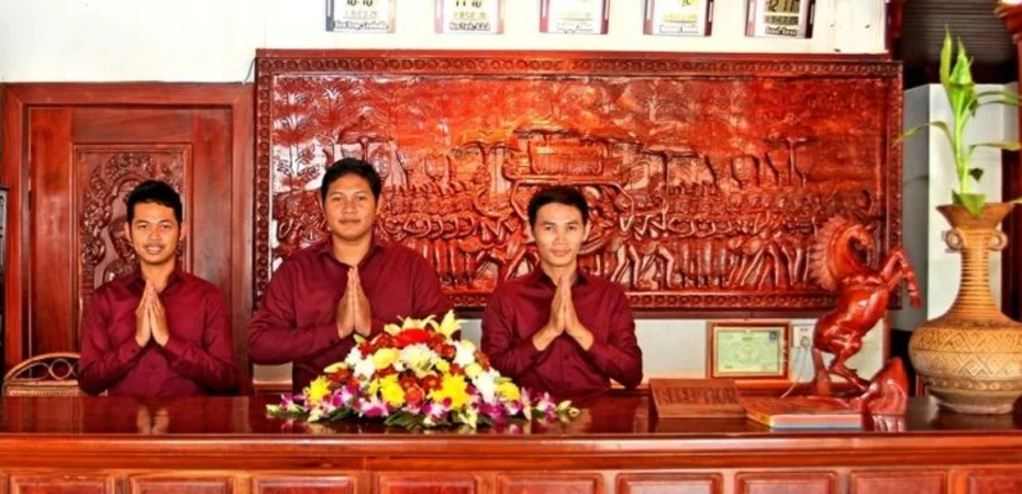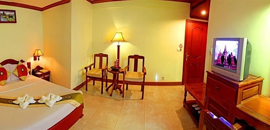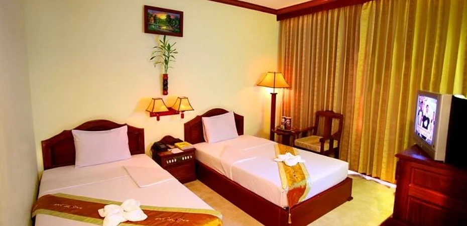 Lage Wenn Sie eine Unterkunft in Siem Reap suchen, ist Thunborey Hotel im Geschäftsviertel und wenige Minuten von Siem Reap Art Center und Psar Chaa Market entfernt eine gute Wahl. Dieses Hotel befindet sich in der Nähe von: Pub Street sowie Angkor Night Market.Zimmer Fühlen Sie sich in einem der 37 klimatisierten Zimmer mit Minibar wie zu Hause. Ein WLAN-Internetzugang (kostenlos) steht zur Verfügung. Es gibt eigene Badezimmer, die über Designer-Toilettenartikel und kostenlose Toilettenartikel verfügen. Zur Austattung gehören Telefone ebenso wie Schreibtische und kostenloses Mineralwasser.Freizeit, Wellness, Premium-Annehmlichkeiten Gönnen Sie sich Massagen oder profitieren Sie von folgenden Freizeiteinrichtungen: Fahrradverleih. Dieses Hotel bietet auch: WLAN-Internetzugang (kostenlos), Concierge-Service und Unterstützung bei der Tourenplanung/beim Ticketerwerb. Nahe gelegene Attraktionen zu erreichen ist dank des Shuttles (gegen Gebühr) ein Kinderspiel.Speisen Dieses Hotel beherbergt ein Restaurant mit Bar. Komfortabel ist aber auch der Zimmerservice (bitte Zeiten beachten). Ein inbegriffenes Frühstücksbuffet wird täglich angeboten.Business, weitere Annehmlichkeiten Zum Angebot für Geschäftsreisende gehören Businesscenter (rund um die Uhr geöffnet), Limousinenservice und Textilreinigungsservice. Ein Flughafentransfer (auf Anfrage) ist verfügbar (gegen Gebühr).