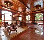 El bonito vestíbulo cubierto de madera es una parte principal de la planta baja, que comunica con Street Lounge y ofrece servicio las 24 horas.