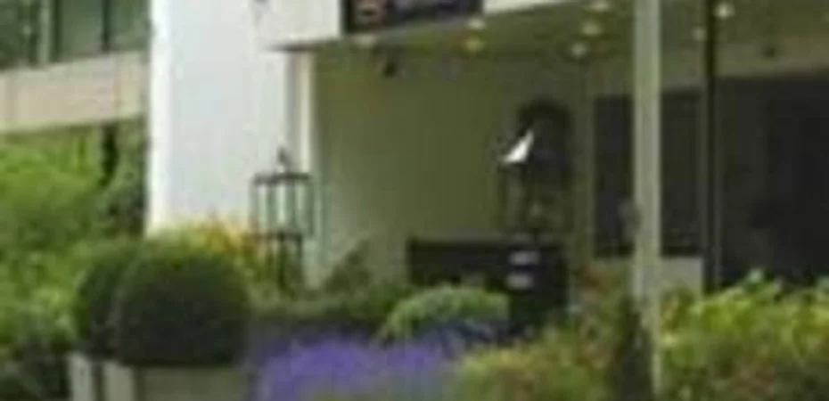 Un moderno edificio bajo.