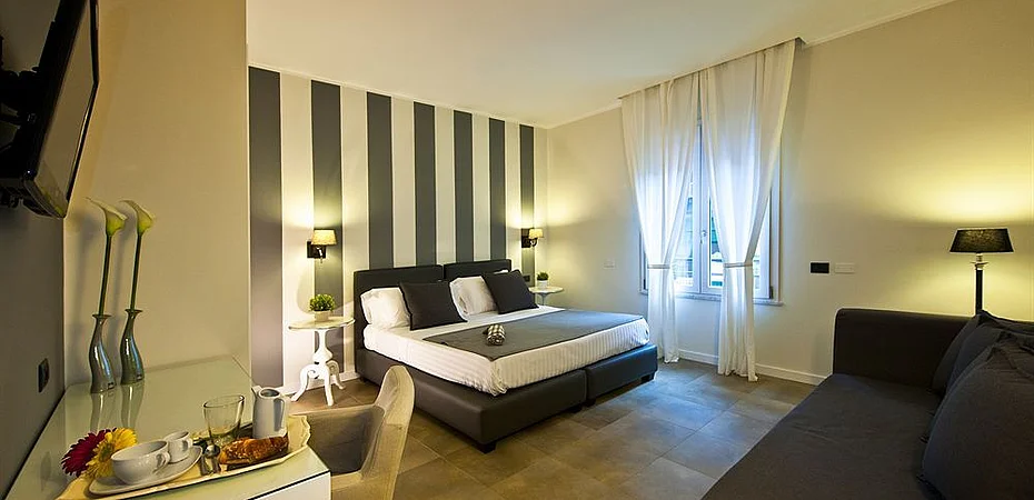 Ubicación del establecimiento Delle Vittorie Luxury Suites & Rooms está en pleno corazón de Castellammare, a pocos pasos de Teatro Biondo Stabile y Iglesia de San Domenico. Este bed and breakfast se encuentra cerca de Quattro Canti y de Museo del Risorgimento Vittorio Emanuele Orlando.Habitaciones Te sentirás como en tu propia casa en una de las 6 habitaciones con aire acondicionado, frigorífico y microondas. Las camas cuentan con colchones viscoelásticos, edredón de plumas y sábanas de algodón egipcio para descansar plácidamente. Con televisor LED de 32 pulgadas y conexión a Internet wifi gratis, tienes para elegir a la hora de entretenerte. El cuarto de baño está provisto de cabezal de ducha tipo lluvia y artículos de higiene personal de diseño.Servicios Aprovecha las instalaciones recreativas, que incluyen sauna y bicicletas de alquiler. Encontrarás también conexión a Internet wifi gratis, servicio de peluquería y servicio de celebración de bodas. Si quieres pasar un día en un parque temático, utiliza el servicio de transporte (de pago) disponible.Para comer Prueba deliciosos platos sin moverte de este bed and breakfast, que cuenta con un restaurante y ofrece servicio de habitaciones con horario limitado. Disfruta de un detalle de bienvenida gratuito organizado por la recepción todos los días, donde podrás conocer a otros huéspedes mientras tomas un bocado.Servicios de negocios y otros Tendrás conexión a Internet de alta velocidad por cable (gratuita), una zona de ordenadores y check-out rápido a tu disposición. Pagando un pequeño suplemento podrás aprovechar prestaciones como servicio de transporte al aeropuerto (ida y vuelta) (disponible las 24 horas) y servicio de transporte al punto de embarque de cruceros.