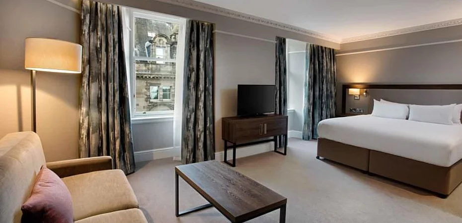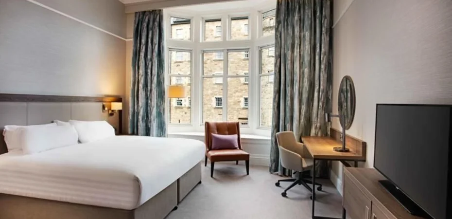 El hotel, situado en un edificio histórico en el centro de la ciudad, ofrece a sus clientes 211 elegantes habitaciones y suites con vistas al castillo de Edimburgo. Los servicios incluyen: wifi, TV, escritorio, aire acondicionado, caja fuerte y servicio de planchado. La propiedad también está equipado para minusválidos.