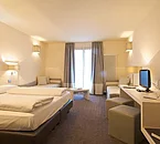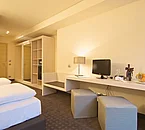 Te sentirás como en tu propia casa en cualquiera de las 80 habitaciones con minibar y televisión LED. La conexión a Internet wifi (de pago) te mantendrá en contacto con los tuyos; también podrás ver tu programa favorito en el televisor con canales digitales. El baño privado con ducha está provisto de artículos de higiene personal gratuitos y bidés. Entre las comodidades, se incluyen caja fuerte, cortinas opacas y teléfono.