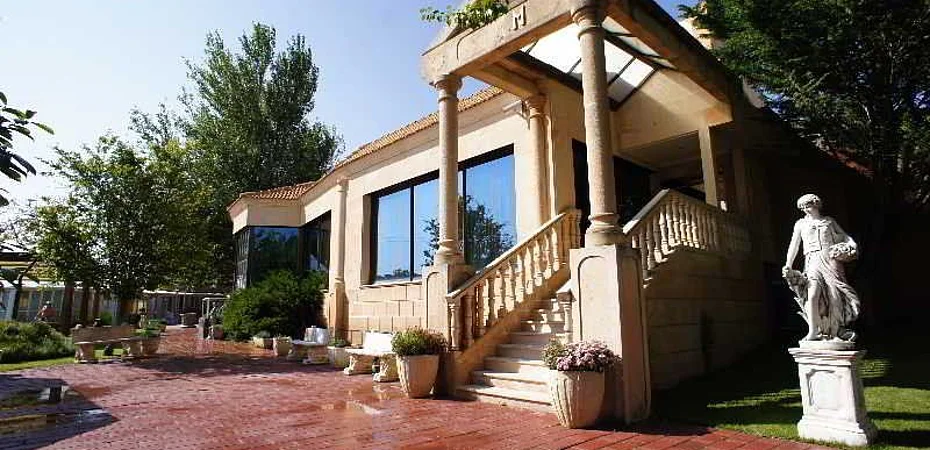 Situado junto a la N-I a 5 minutos en coche de Aranda de Duero, rodeado de bellos jardines. Ofrece habitaciones modernas, todas ellas con TV, baño completo, secador de pelo y espejo de aumento. Sistema WiFi gratuito. Dispone de bar y restaurante donde se podrá degustar el famoso cordero asado y el vino Ribera del Duero.
