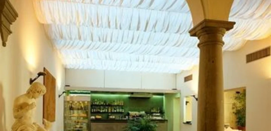 El hotel está compuesto de dos edificios. El edificio original, un palacio del período renacentista, fue diseñado por el famoso arquitecto Cosimo Bartoli. El hotel cuenta con un anexo ubicado exactamente frente al edificio más antiguo. Las habitaciones en ambos edificios son idénticas en términos de calidad y comodidad.