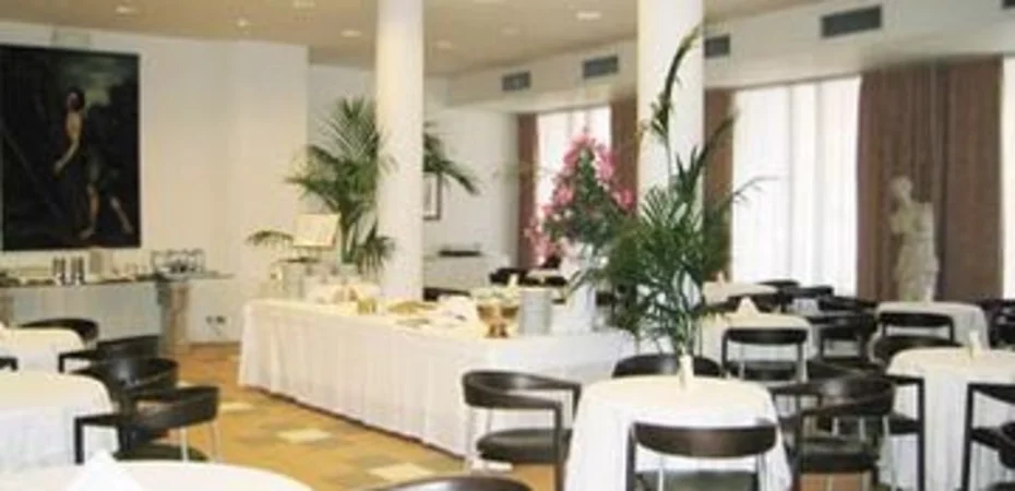 El hotel no tiene restaurante; sin embargo, cuenta con una amplia sala de desayuno con piso de baldosas. Está decorada de blanco con mesas y sillas de madera.