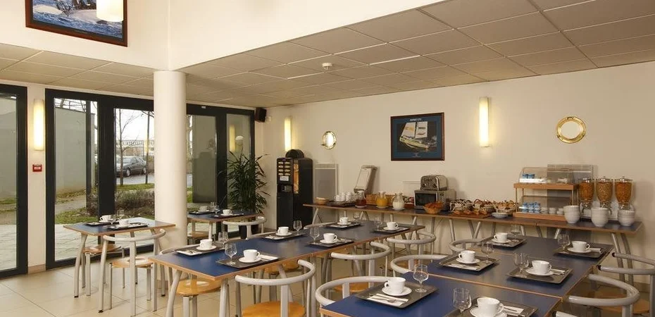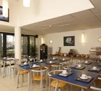 Un petit-déjeuner sous forme de buffet froid est servi dans le restaurant au rez de chaussée, qui est de style moderne et très lumineux.