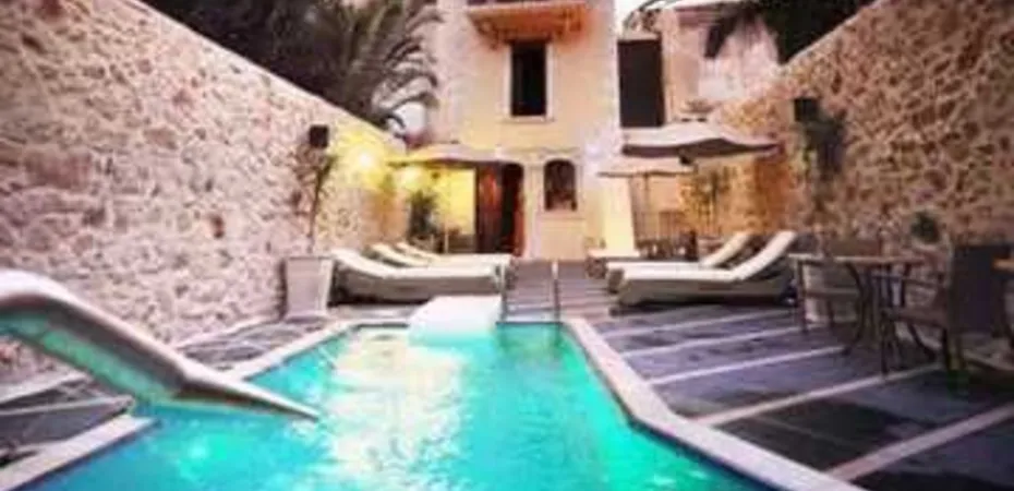 The hotel is 19th century building that combines luxury, calmness and echo of the history of Rethymno town. Quality services are offered like room service, medical service, reception area and breakfast room. The hotel also features hamam (with extra charge), poolside bar, swimming-pool and jacuzzi in the garden area with umbrellas and sun-beds (free of charge). The sandy beach is only 350 meters away from the hotel, with public showers (deck chairs and umbrellas are with extra charge).