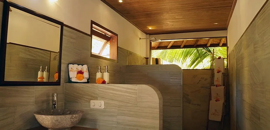 Property Location With a stay at Cili Emas Oceanside Resort in Tejakula, you'll be on the beach and close to Angel Canyon Dive Site. This hotel is within the vicinity of Tangga Reef and Pura Puncak Penulisan.Rooms Make yourself at home in one of the 11 guestrooms. Complimentary wireless Internet access is available to keep you connected. Private bathrooms with showers feature rainfall showerheads and complimentary toiletries. Conveniences include safes and desks, and housekeeping is provided daily.Amenities Relax at the full-service spa, where you can enjoy massages, body treatments, and facials. This hotel also features complimentary wireless Internet access and tour/ticket assistance.Dining Enjoy a satisfying meal at a restaurant serving guests of Cili Emas Oceanside Resort. Quench your thirst with your favorite drink at a bar/lounge.Business, Other Amenities Featured amenities include express check-in, express check-out, and dry cleaning/laundry services. A roundtrip airport shuttle is provided for a surcharge (available 24 hours), and free self parking is available onsite.