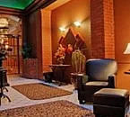 The lobby of the hotel maintains its old world charm. The walls of the lobby are worked in oak wood paneling, which compliments the marble floors and counter tops. Located in the lobby is the Atrium, a beautiful sitting room complete with flowering plants, cozy chairs and a glass ceiling.