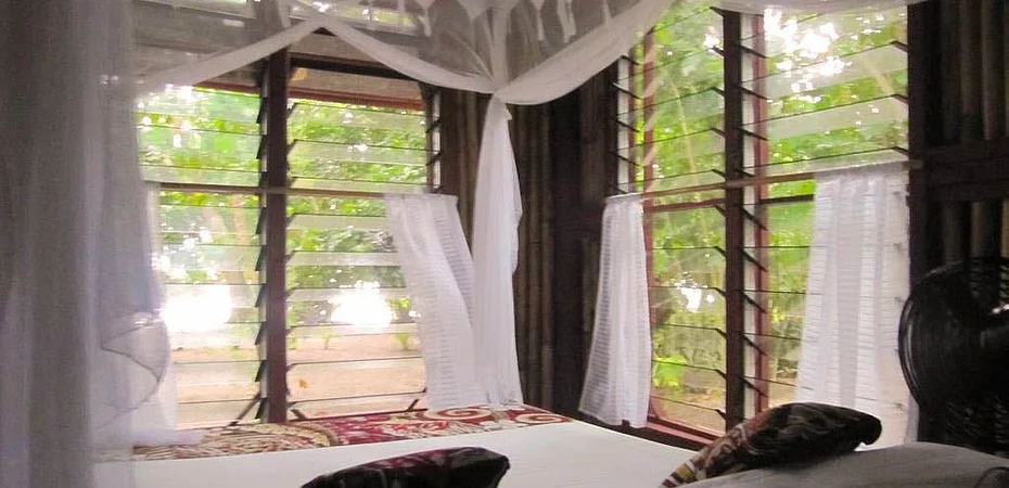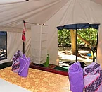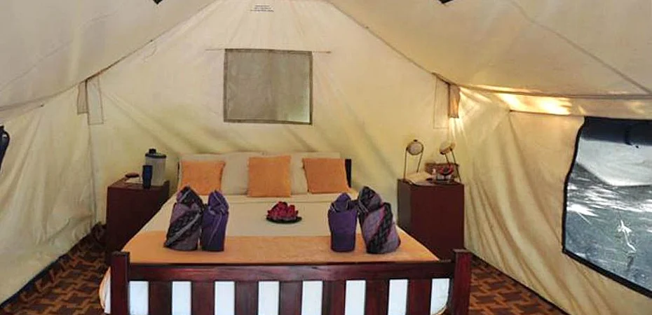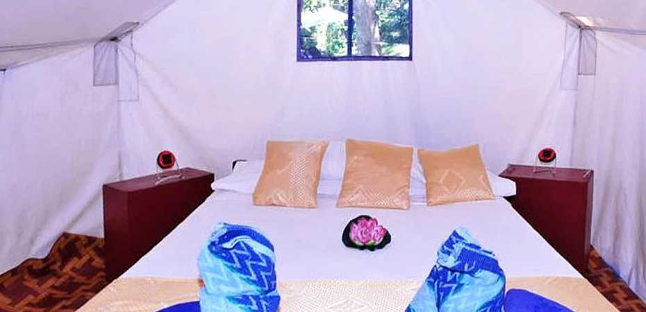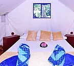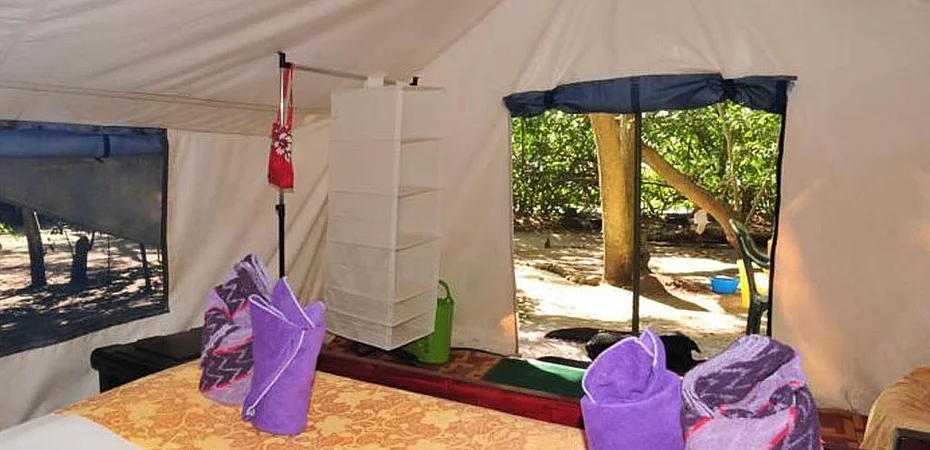 The structure has single tents and double tents equipped with cupboard, solar lamp, patio and mosquito nets on all sides; bathrooms and showers are shared. The structure also has bures made of bamboo and hardwood; equipped with a double or queen bed, mosquito nets, patio with table, chairs and deck chairs.
