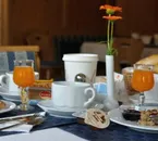 It is located in a typical mountain-style building, has bar, patio and breakfast room.