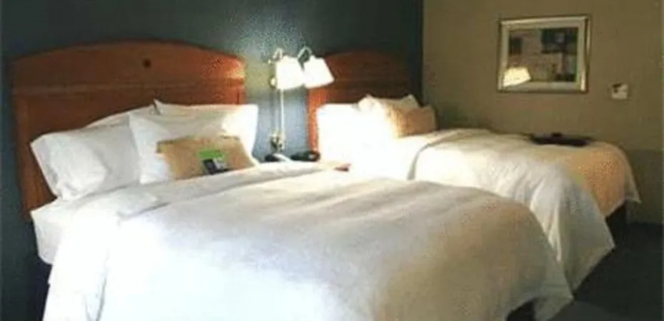 The rooms at the Hampton Inn New York LaGuardia Airport include all LCD flat screen TV, a coffeemaker and an armchair with pouf.