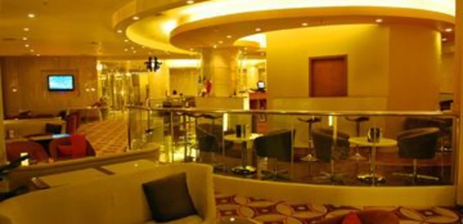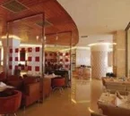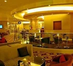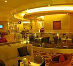 The lobby is medium in size and nicely decorated with warm atmosphere.