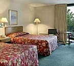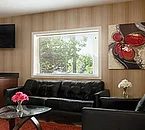The rooms are small, with wall-to-wall carpeting, simple furnishings and pictures of art on the walls.