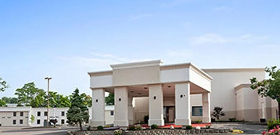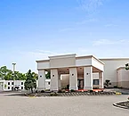 The hotel is a modern, low-rise building.