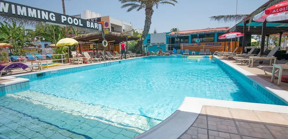 Property Location When you stay at Kkaras Hotel in Ayia Napa, you'll be by the sea and minutes from THALASSA Municipal Museum and Ayia Napa Monastery. This hotel is within close proximity of Grecian Bay Beach and Ayia Napa Aqueduct.Rooms Make yourself at home in one of the 44 air-conditioned rooms featuring refrigerators. Rooms have private furnished balconies. Private bathrooms with shower/tub combinations feature complimentary toiletries and hair dryers. Conveniences include phones, housekeeping is provided daily, and you can request cribs/infant beds (complimentary).Amenities Enjoy recreation amenities such as a seasonal outdoor pool or take in the view from a garden. This hotel also features complimentary wireless Internet access and a television in a common area.Dining Enjoy a satisfying meal at a restaurant serving guests of Kkaras Hotel. While enjoying a refreshing dip in the hotel pool, you can order your favorite drink at the poolside bar.Business, Other Amenities Featured amenities include a 24-hour front desk and coffee/tea in a common area. Free self parking is available onsite.