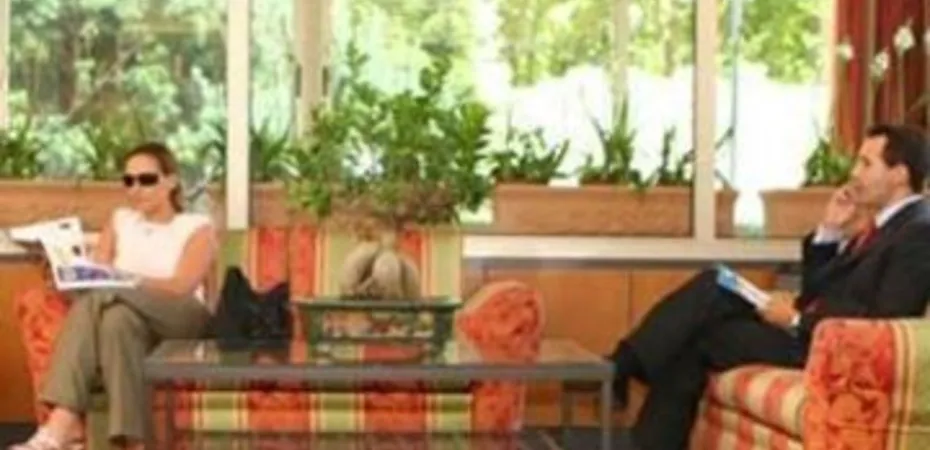 The lobby area is large and modern, although would benefit from renovation.