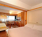 The apartments feature large windows and simple furnishings, functional and practical. There are studios for 2 or 3 beds, kitchen-living room, kitchenette with electric stove, refrigerator and kitchen equipment, telephone, color TV, private bathroom with hairdryer, kitchen linen, table linen and towels. The apartments are 4, 5 or 6 people and have a living room-kitchen, a kitchenette with hotplates, refrigerator, microwave, dishwasher and kitchen equipment, telephone, color TV, private bathroom with hairdryer, kitchen linen, of bed and bath. In the living area c 'is the double bed separated from the sliding wall is the bedroom with bunk beds and / or tilting. Some apartments have a balcony.