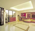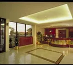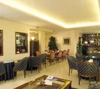 It is quite large and charming furnished in a classical style. Walls covered in a creamy coloured wall-paper, marble floor is of a light colour. There is a welcoming area with sofas and chairs and tables and also another area with a tv and bar, open from the afternoon until midnight. There are two lifts.