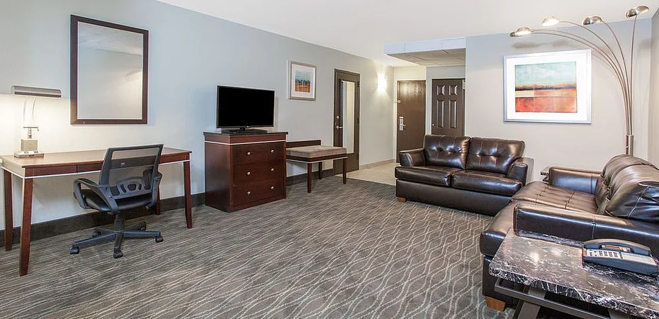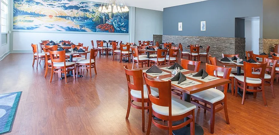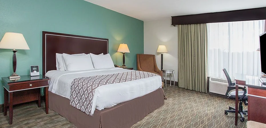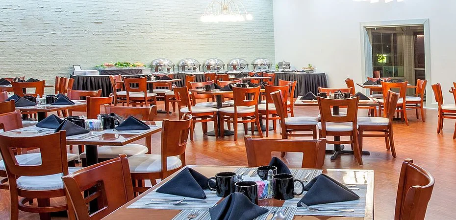 Hotel has a restaurant serving American and Cajun cuisine.