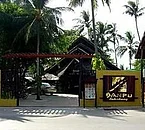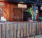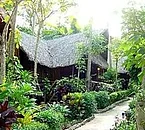 Il complesso è composto da un gruppo di bungalow bassi con il tetto di paglia e da un edificio in legno a 2 piani nascosti in un bel giardino