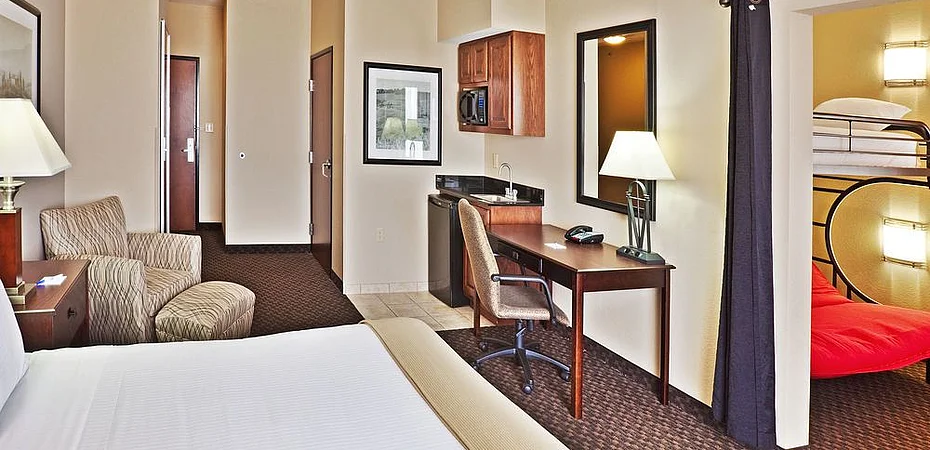 Welcome to the Holiday Inn Express Hotel & Suites in Miami, Oklahoma Conveniently located off I-44, our Miami, Oklahoma hotel is less than two miles from downtown Miami, giving guests easy access to local attractions and businesses. Your family will enjoy a stay at our Miami, OK hotel because of its convenient location near area attractions like Twin Bridges State Park, the historic Coleman Theatre, the Motorcycle Museum, Mickey Mantle's childhood home and the Dobson Museum, where you can learn about local Native American tribes. Downtown Miami, which boasts the longest original strip of historic Route 66, features premium shopping and a variety of local restaurants. It is located just two miles from our hotel in Miami, Oklahoma. Our hotel is situated close to several local companies such as Discovery Plastics, J & M Farms, Wal-Mart, Eagle-Picher Industries and Newell Coach. The Peoria Ridge Golf Course, home of the annual NGA Golf Tournament, is just four miles from our hotel in Miami, Oklahoma. In addition, we offer deluxe amenities to accommodate business travelers, with a 24-hour Business Center and meeting rooms. During your Miami visit, enjoy our excellent hotel amenities including free high-speed Internet access, a heated, indoor pool with a Jacuzzi, a Fitness Center and free hot breakfast bar. Start planning your trip today and take advantage of our great Miami, Oklahoma hotel deals and rates.