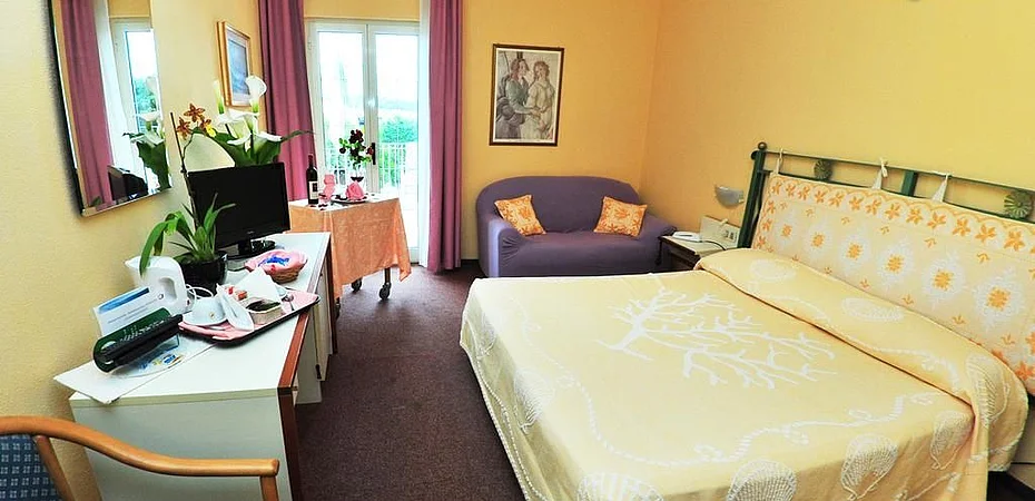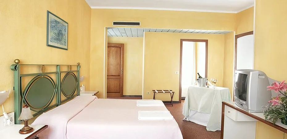 Le camere, arredate in stile classico e moderno, sono curate in ogni dettaglio ed arricchite con tutti i migliori comfort quali: aria condizionata, wifi, asciugacapelli, minibar, cassaforte, TV, telefono e sveglia. Le camere dispongono di terrazza o balcone e la struttura è attrezzata anche per le persone diversamente abili.